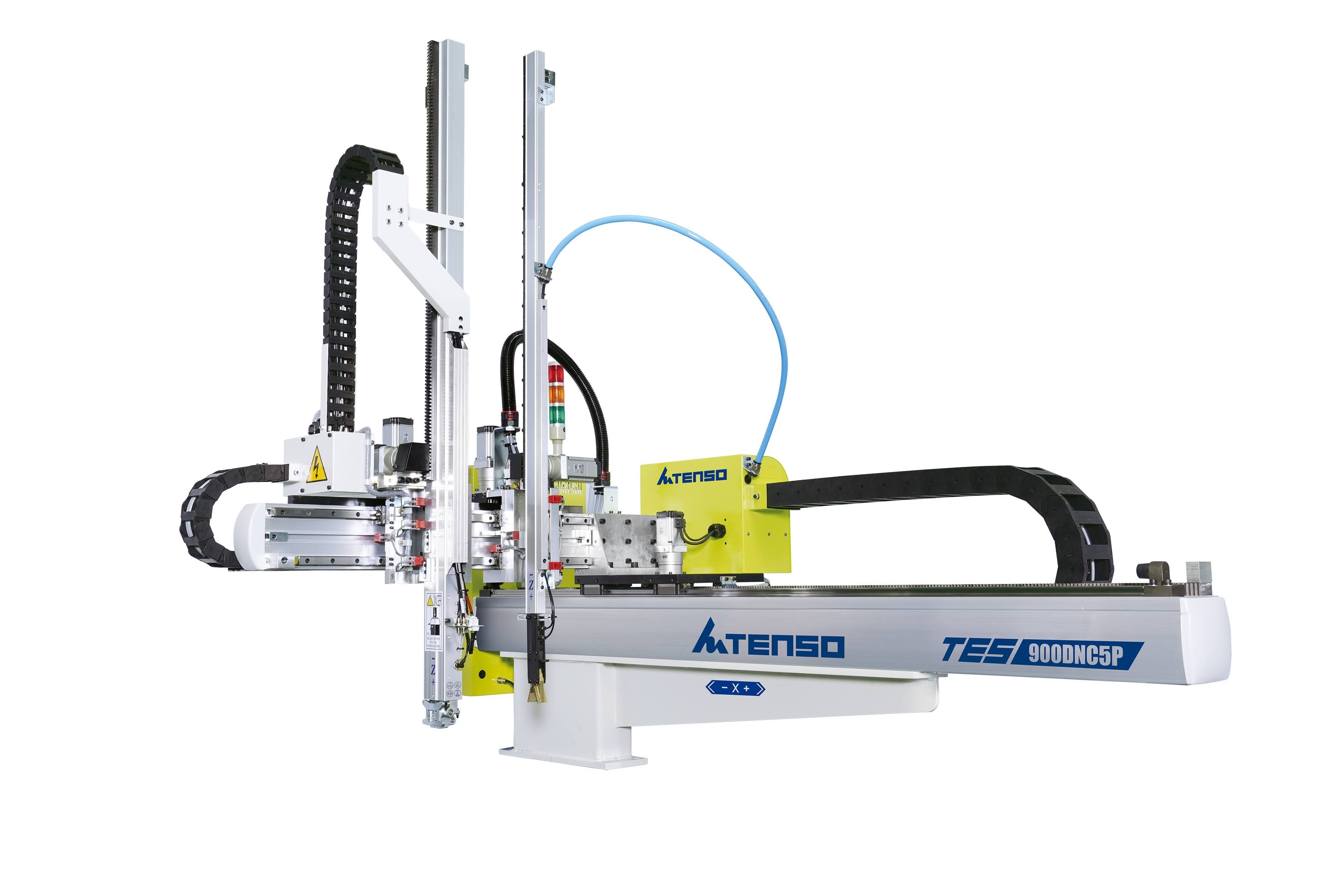 TES-DNC5P Series – Dual-arm model - Powered by the latest generation of Tenso technology, the TES series is built tough, cost-effective, and perfectly suited for standard automation on injection molding machines ranging from 50 to 550 tons. With our user-friendly, self-developed interface — the T-12 Controller — programming and operating the robot is incredibly straightforward, It’s also what we care about most.